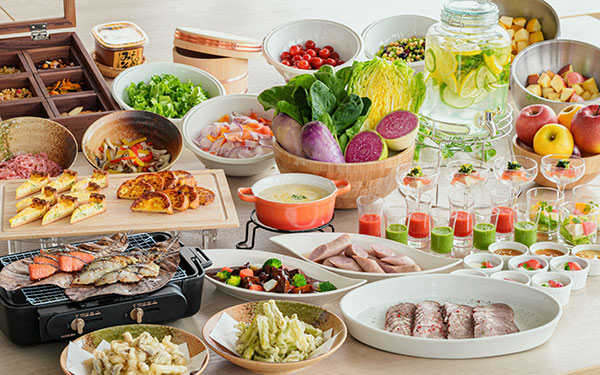 在自助早餐“Ma~San早餐”(“Ma~San”在冲绳方言中意为“美味”)中,我们精心提供由精选冲绳本地食材与深谙冲绳风味的主厨匠心打造的特色冲绳料理。特别推荐使用冲绳县产和牛与冲绳县品牌猪肉,由主厨现场精心烹调的“主厨特制佳肴”,是开启活力满满一天的最佳选择。此外,还有曾是琉球王朝御用的“玉那覇味噌酱油味噌汤”,以及现烤、奶油香气四溢的可颂面包等冲绳美味齐聚一堂。请尽情享受冲绳独特的食材与饮食文化,开启美好的一天!