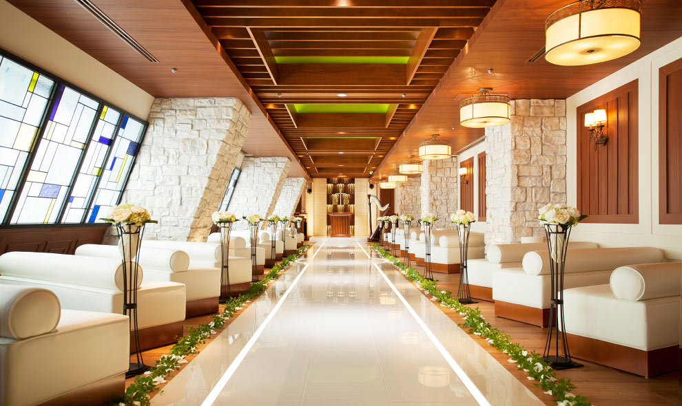 教堂、神殿(用于婚礼)、婚纱礼服租借室、照相室、美发/理发、购物楼层、美食楼层