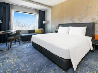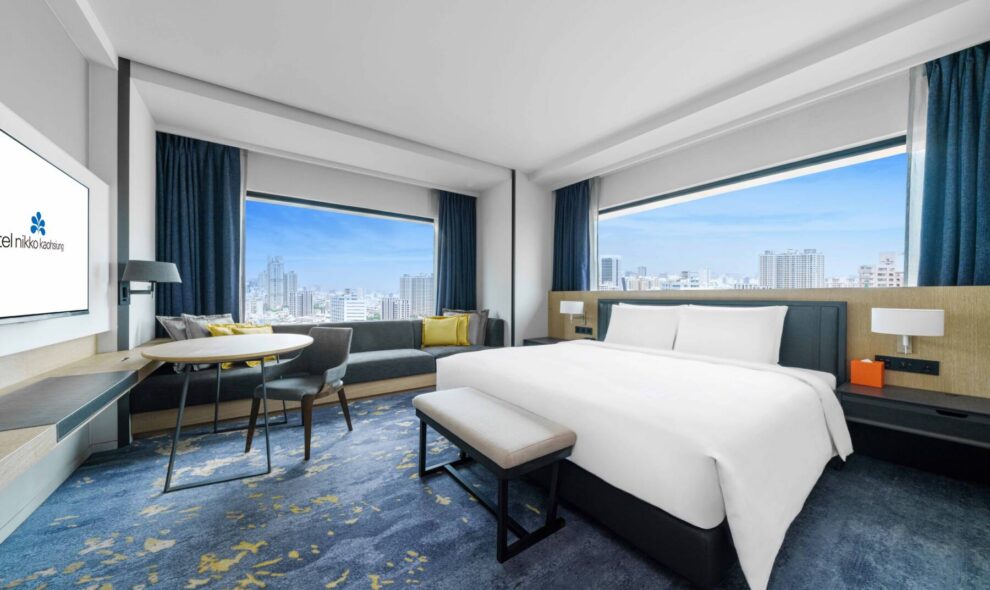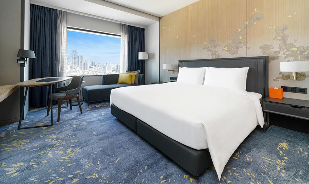 我們提供舒适宽敞的空间,提供不同床型的选择,客房配置席梦思床垫,营造舒心放松的住宿环境。以沉稳内敛的色调,搭配木作格栅营造和风氛围;以地毯设计描绘耀眼阳光洒在海面上波光粼粼的海港意象。入住行政楼层,可享行政酒廊等各项礼遇,完善的会议空间与餐饮服务一应俱全。不论休闲旅游或商务行程,下榻于此的宾客都能享受贴心完善的服务及顶级非凡的住宿体验。(全室禁烟)